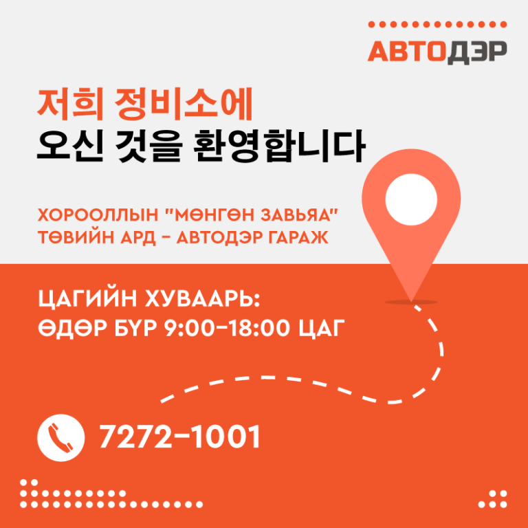 - Баруун 4 замаас 3-р хороолол өгсөх замд, “Мөнгөн завьяа” төвийн арын Туул 19 гудамж, АВТОДЭР гараж
